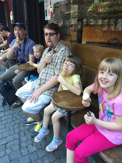 Yes we continue our tradition of Eis everywhere we go and have indoctrinated Jeff and my parents as well. The girls got a rose flavor that was really good and I got waldmeister which I really like. Chopper didn't want any.