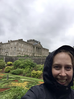 With peace and tranquility restored, we changed pants and socks and donned our rain jackets again and headed out into the wilds of Lyme Park. The rain did let up a bit and we mostly got sprinkles instead of a downpour but I wasn't going to let that stop me from seeing Pemberley!!